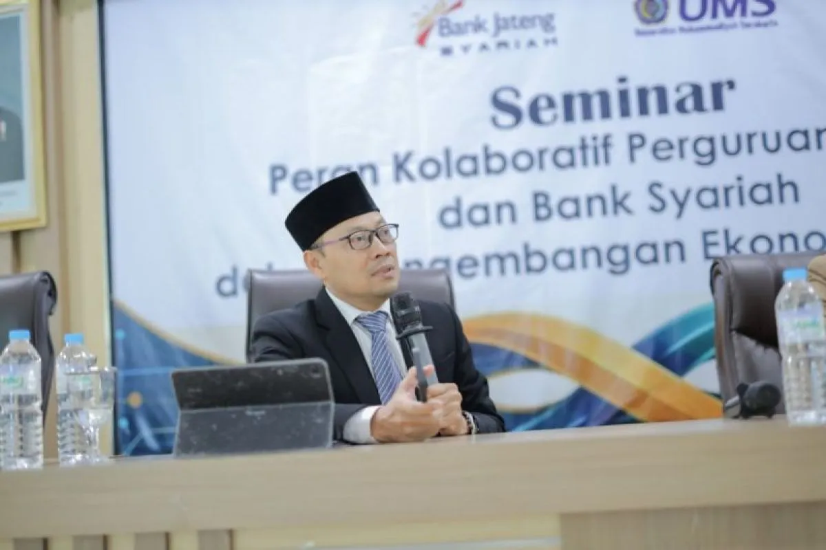 Solo (ANTARA) - Universitas Muhammadiyah Surakarta (UMS) menggandeng Bank Jateng Syariah menggelar seminar bertajuk Peran Kolaboratif Perguruan Tinggi dan Bank Syariah dalam Pengembangan Ekonomi Syariah di Ruang Seminar Lantai 7 Gedung Induk Siti Walidah UMS Solo, Jawa Tengah, Jumat.