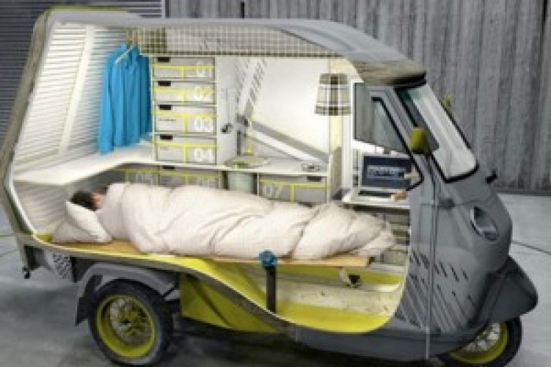 Seorang perancang asal Jerman Cornelius Cormanns merancang kendaraan roda tiga mirip bajaj untuk berkemah. "Bahan dasar" kendaraan rancangannya adalah satu skuter Piaggio, seperti dikutip dari Daily Mail.