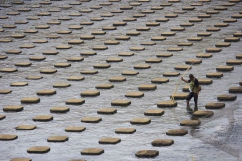 Warga beraktivitas di sekitar DAM Colo, Nguter, Sukoharjo, Jawa Tengah, Selasa (7/5). Pemerintah Jawa Tengah melalui Balai Besar Wilayah Sungai Bengawan Solo (BBWSBS) pada tahun 2013 ini mengalokasikan dana sebesar Rp19 milliar untuk perbaikan saluran irigasi DAM Colo agar berfungsi maksimal saat musim hujan maupun musim kemarau. FOTO ANTARA/Herka Yanis Pangaribowo/tom/13.