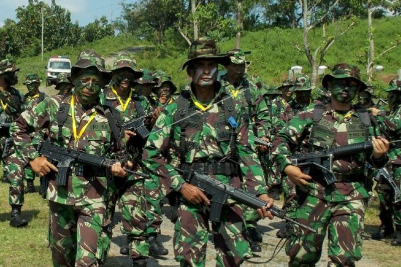 Peserta apel Komandan Satuan (Dansat) Kodam IV/Diponegoro berjalan sambil membawa senjata, saat mengikuti kegiatan latihan tembak tempur di medan latihan tempur Meteseh Semarang, Jawa Tengah, Rabu (11/4). Latihan tembak tempur yang diikuti 181 komandan satuan tempur dan kepala badan pelaksana Kodam IV/Diponegoro tersebut untuk meningkatkan profesionalisme dan ketangguhan prajurit dalam menghadapi tantangan tugas. ANTARA FOTO/R. Rekotomo/tom/18.