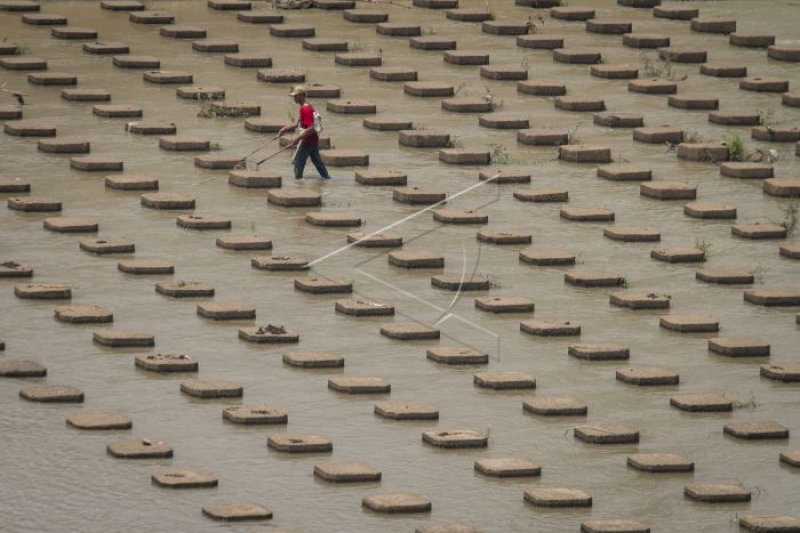 Warga mencari ikan di kawasan Bendungan Colo, Nguter, Sukoharjo, Jawa Tengah, Senin (1/10). Bendungan Colo yang mengaliri lahan pertanian seluas lebih dari 25 ribu hektar di Kabupaten Wonogiri, Sukoharjo, Klaten, Karanganyar, Sragen hingga Ngawi itu ditutup sementara selama satu bulan untuk dilakukan peliharaan. ANTARA FOTO/Mohammad Ayudha/tom/18.