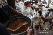 Anggota Animals Hope Shelter Indonesia menyiapkan makanan untuk anjing yang diselamatkan dari kasus penyelundupan di Semarang, Jawa Tengah, Rabu (10/1/2024). Relawan Animals Hope Shelter Indonesia merawat 226 ekor anjing barang bukti dari hasil pengungkapan tindak kejahatan penyelundupan anjing yang digagalkan oleh Polrestabes Semarang dan relawan pada Sabtu (6/1), kemudian akan dibuka kesempatan bagi masyarakat untuk adopsi anjing-anjing itu dengan persyaratan yang ketat usai penyelidikan pihak kepolisian selesai. ANTARA FOTO/Makna Zaezar/tom.