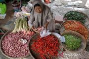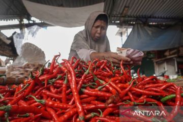 Seorang pedagang cabai merah menghitung uang di Pasar Wage, Purwokerto, Banyumas, Jateng, Senin (2/12/2024). Pedagang lebih memilih membuat cabai kering yang bisa disimpan lebih lama dan dijual dengan harga yang lebih tinggi dibanding harga saat ini yang hanya Rp30.000 per kilogram. ANTARA/Idhad Zakaria/tom.