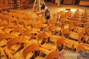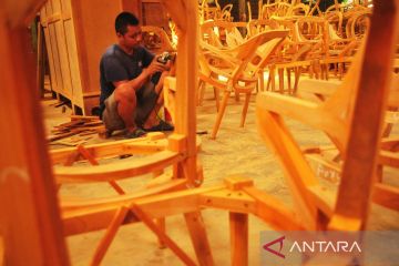 Pekerja menyelesaikan pembuatan kursi di salah satu industri furnitur di Bandengan, Jepara, Jawa Tengah, Rabu (9/4/2025). Sejumlah eksportir furnitur dari Kabupaten Jepara tujuan Amerika Serikat mengaku khawatir akibat kebijakan Presiden Donald Trump yang menaikkan tarif impor hingga 32 persen untuk sejumlah produk dari Indonesia dapat mengakibatkan penurunan daya saing ekspor produk furnitur dan turunnya permintaan mebel Indonesia di pasar AS yang dapat berdampak terjadinya pengurangan karyawan. ANTARA FOTO/Yusuf Nugroho/tom.