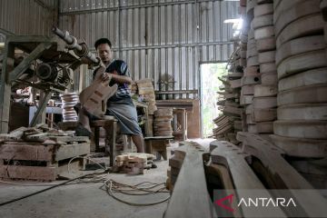 Perajin menyelesaikan pembuatan gitar di Desa Ngrombo, Baki, Sukoharjo, Jawa Tengah, Kamis (29/5/2025). Kementerian UMKM saat ini telah menghapus sekitar 20 ribu utang UMKM dari bank BUMN Himbara dari target fase pertama penghapusan utang 67.668 UMKM. ANTARA FOTO/Mohammad Ayudha/tom.