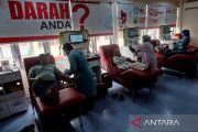 Petugas mengambil darah pendonor di kantor Palang Merah Indonesia (PMI) Solo, Jawa Tengah, Senin (9/6/2025). PMI Solo memastikan stok darah tetap aman usai momen libur Idul Adha dengan stok mencapai 3.674 kantong pada Senin (9/6), sementara jumlah pendonor harian sebanyak 100 orang sehingga dapat mencukupi untuk membantu tindakan medis di Kota Solo dan sekitarnya. ANTARAFOTO/Maulana Surya/tom.