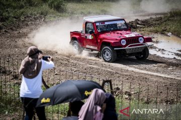 Pereli Toni Utomo bersama navigator Nova Rangga memacu mobilnya saat mengikuti Kelas F3 pada Kejuaraan Nasional Sprint Rally 2025 Putaran 4 di POJ City, Semarang, Jawa Tengah, Minggu (28/9/2025). Kejuaraan Nasional Sprint Rally 2025 tersebut diikuti 147 pereli dari berbagai daerah seperti Jawa Tengah, DKI Jakarta, Jawa Barat, Sumatera Utara, Jambi, dan Kalimantan Timur. ANTARA FOTO/Aprillio Akbar/tom.