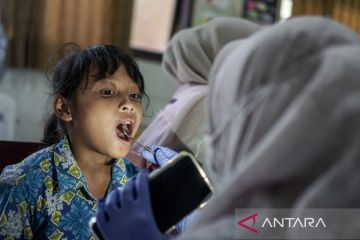 Petugas medis memeriksa gigi siswa pada kegiatan Pemeriksaan Gigi Gratis di SD Negeri II Sumber, Solo, Jawa Tengah, Rabu (15/10/2025). Kegiatan tersebut untuk deteksi dini masalah kesehatan gigi pada siswa sekaligus upaya memberikan edukasi dan menumbuhkan kesadaran kepada anak mengenai pentingnya menjaga kesehatan gigi dan mulut. ANTARA FOTO/Mohammad Ayudha/tom.
