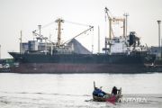 Nelayan menggunakan perahunya melintas di dekat aktivitas bongkar muat peti kemas di Terminal Peti Kemas Pelabuhan Tanjung Emas, Semarang, Jawa Tengah, Jumat (7/11/2025). Menteri Koordinator Bidang Infrastruktur dan Pembangunan Kewilayahan Agus Harimurti Yudhoyono (AHY) menargetkan kontribusi sektor maritim terhadap Produk Domestik Bruto (PDB) nasional dari 8,1 persen pada 2025 menjadi 9,1 persen pada 2029 melalui peningkatan kapasitas dan efisiensi pelabuhan utama serta penguatan jaringan tol laut yang menjadi tulang punggung logistik nasional. ANTARA FOTO/Aprillio Akbar/tom.