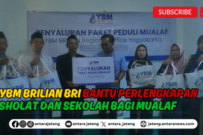 Temanggung (ANTARA) - Yayasan Baitul Maal (YBM) BRILian Regional Office Yogyakarta, bersama Cabang BRI Temanggung menyalurkan paket peduli mualaf di Dususn Kalisat, Desa Kalimanggis, Kecamatan Kaloran, Temanggung. Bantuan ini diberikan untuk menambah semangat beribadah serta belajar Agama Islam.(ANTARA/Firman Eko Handy)